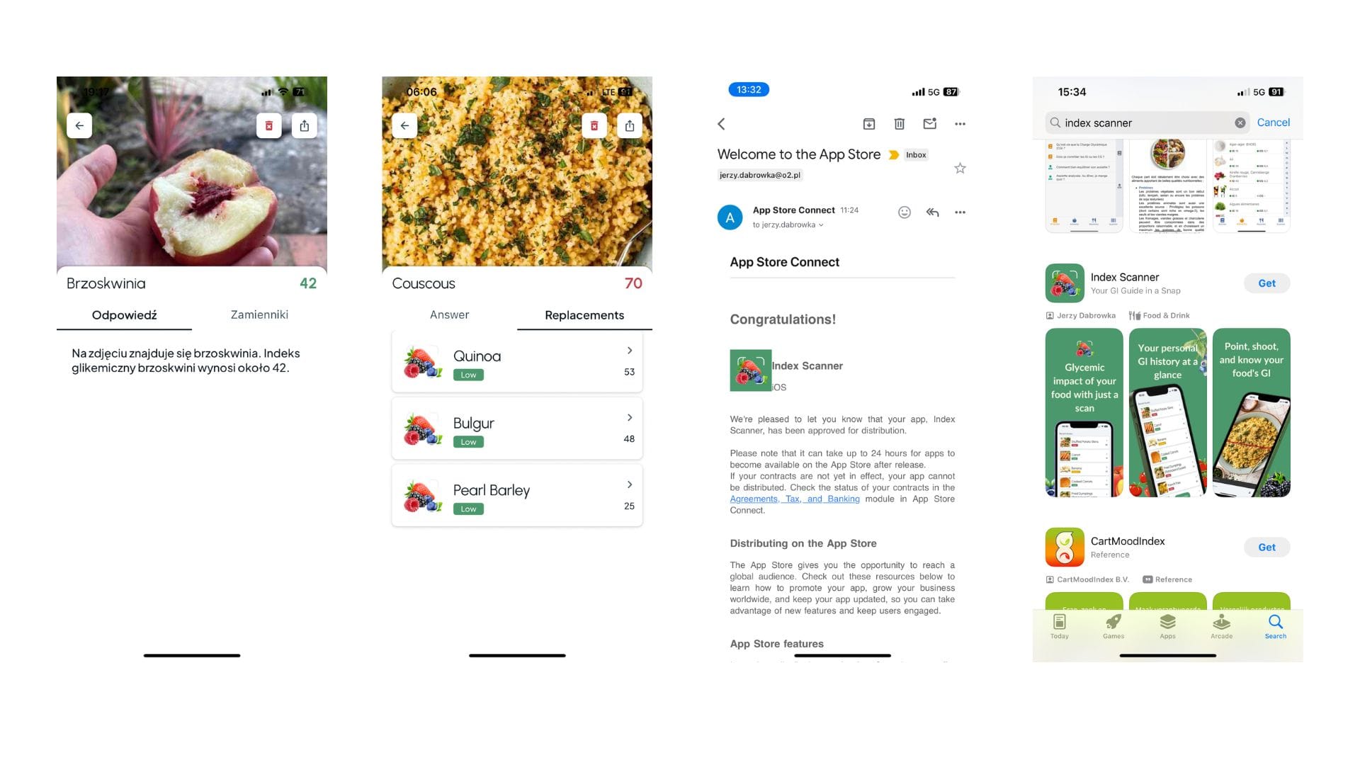Pierwsza wersja Logi, wtedy nazwana Index Scanner, bowiem to była jedyna funkcja, skan zdjęcia pokazywał indeks glikemiczny i zamienniki z niższym wskaźnikiem. Samo stworzenie działającej aplikacji zajęło bodaj z cztery wieczory. Znacznie dłużej trwały kwestie formalne konieczne do publikacji w sklepie - regulaminy i polityki, opisy oraz wizualizacje (dzielnie stworzone w Canvie). Po niecałym miesiącu byłem w App Store.